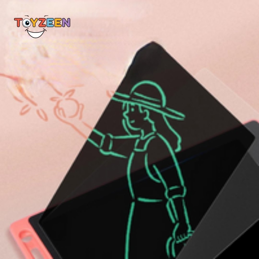 A 10-inch LCD electronic drawing tablet is a portable and reusable device that allows you to draw, write, and doodle without using paper and pencil. It has a pressure-sensitive LCD screen that displays your strokes in real time. You can erase your drawings with the touch of a button, and you can also lock the screen to prevent accidental deletion.