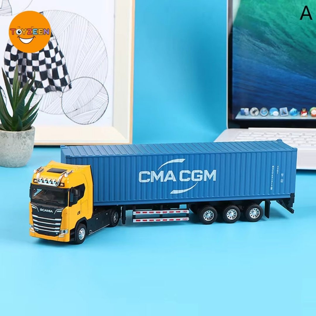 A highly detailed metal container truck, this model boasts pull-back action, vibrant flashing lights, and realistic engine sounds. It?s the ideal toy for imaginative play and a standout piece for any display collection.
