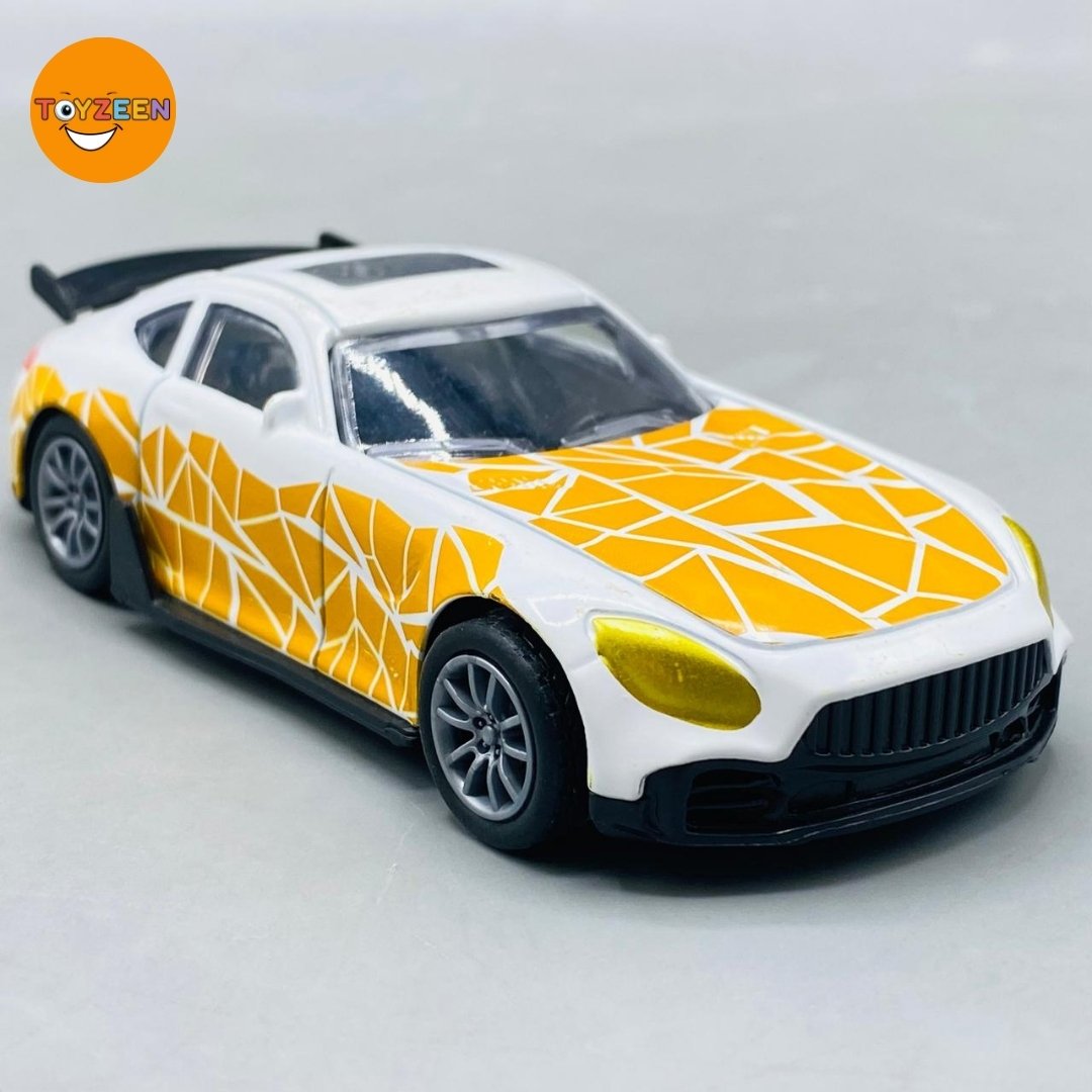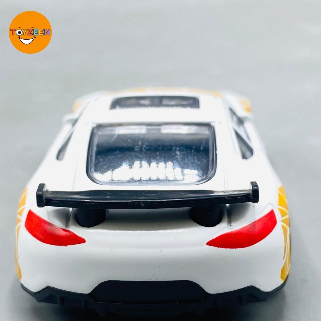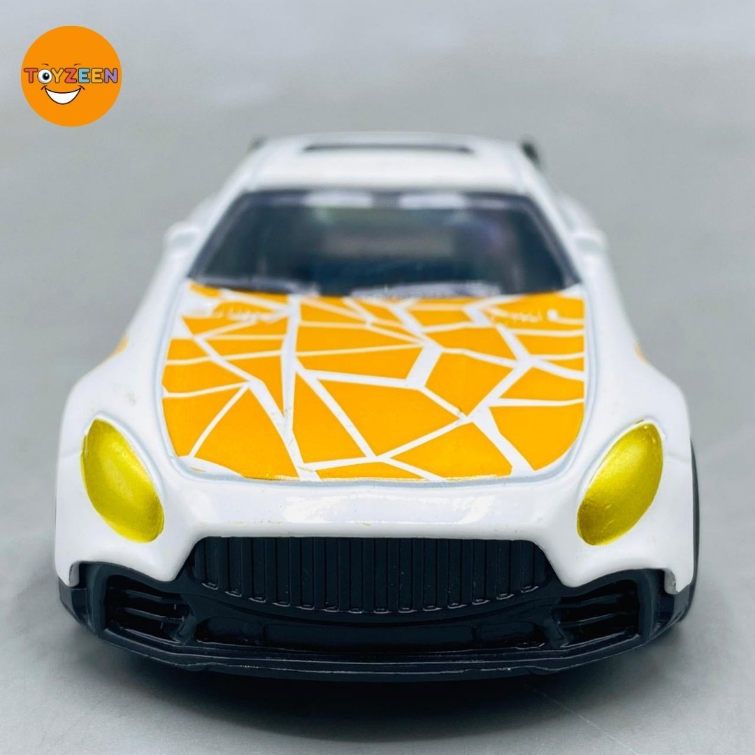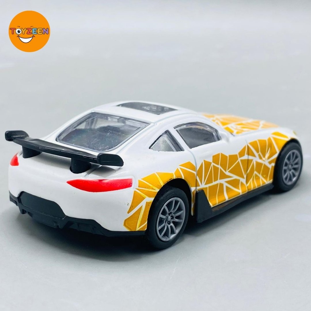 Sporty Details: Features a fixed black rear spoiler for aerodynamic flair, realistic wheels, a black mesh grille, and cool tinted yellow headlights, all adding to its sporty appeal.