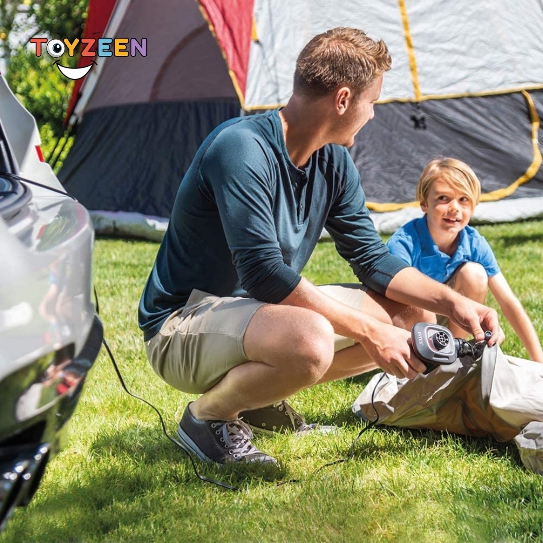 A powerful electric pump for inflating and deflating an air Mattress, inflatable boat, toys, etc. Suitable for a 12 volt (Car)Connection.