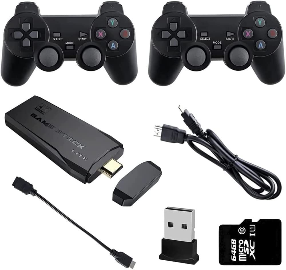 Upgraded version: The wireless TV game console has built-in 10000+ rich games and built-in 9 simulators and is equipped with a 64GB TF card. It also uses upgraded game chips with more powerful functions, supporting multiple emulators such as 8-bit, 16-bit, 32-bit, 64-bit, and 128-bit. Perfectly meet your needs for picture quality and game fluency.
