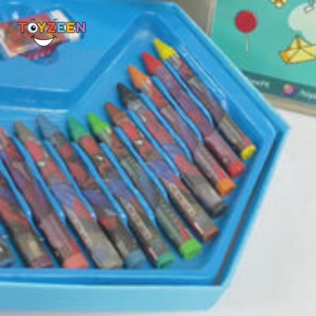 Art Kit includes: 12 crayons, 12 watercolor Paints, 6 Color Markers, 12 mini color pencils, 1 pencil sharpener and 1 easer,